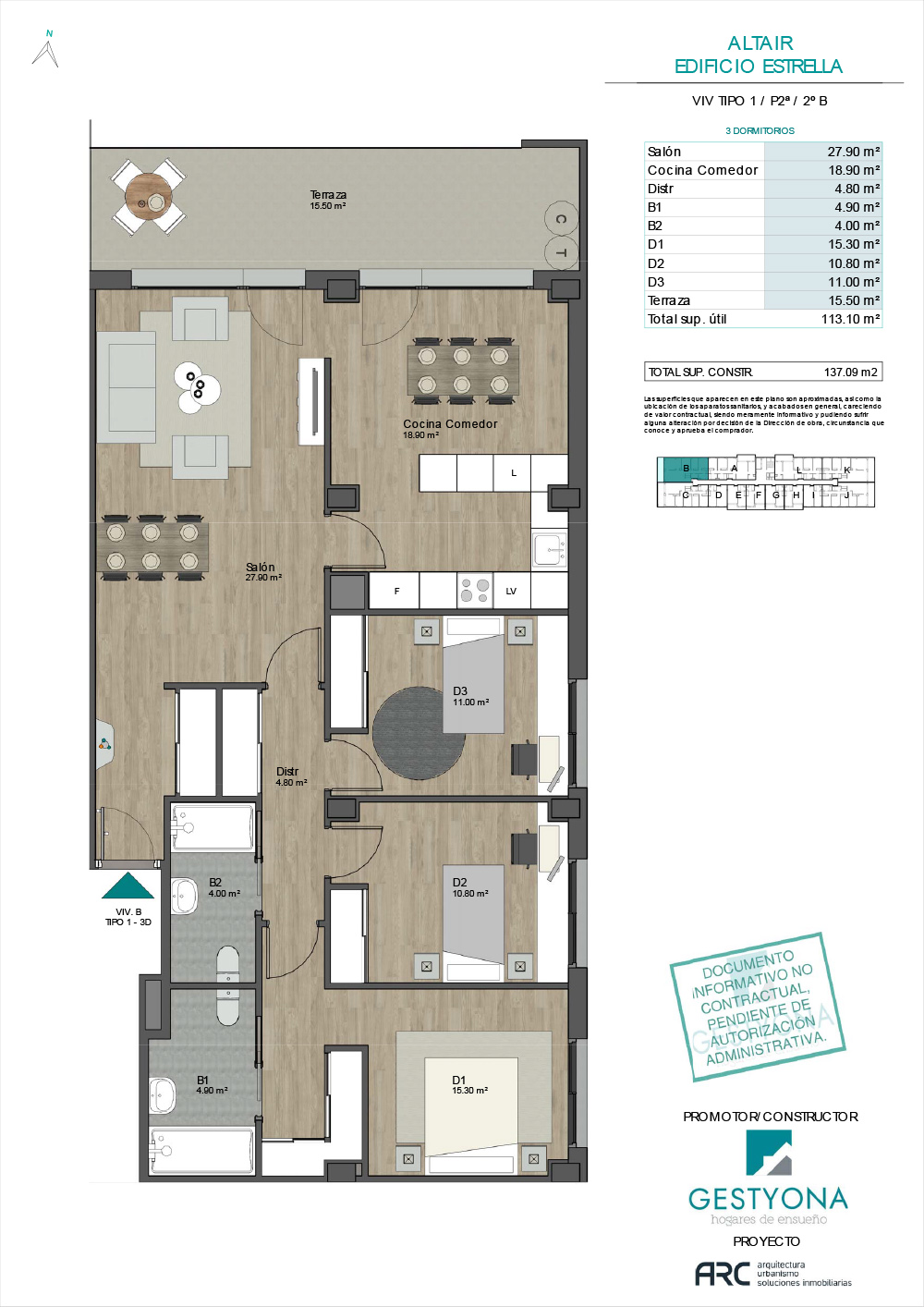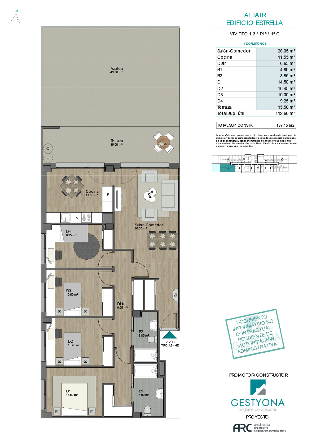 de 1, 3 y 4 dormitorios