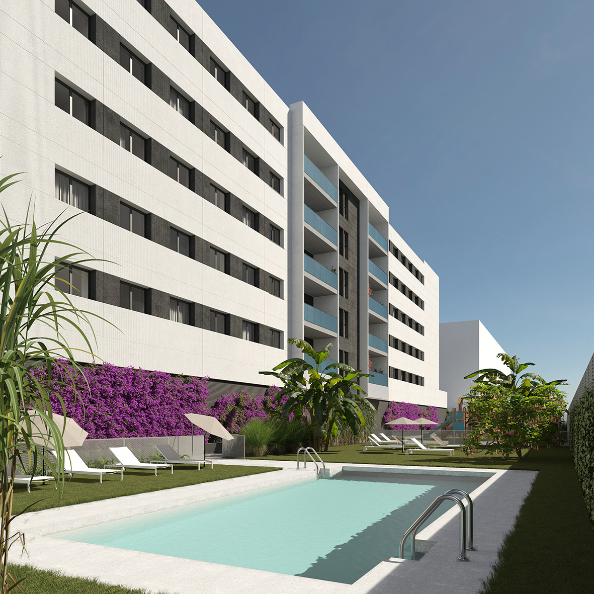 Con un diseño elegante y moderno en donde el bienestar y la calidad de vida se respira en cada rincón. La luz natural, amplias terrazas, piscina comunitaria y zonas verdes, en plena zona de expansión de la ciudad, te aportan lujo y tranquilidad para poder compartir momentos inolvidables con tu familia y amigos.