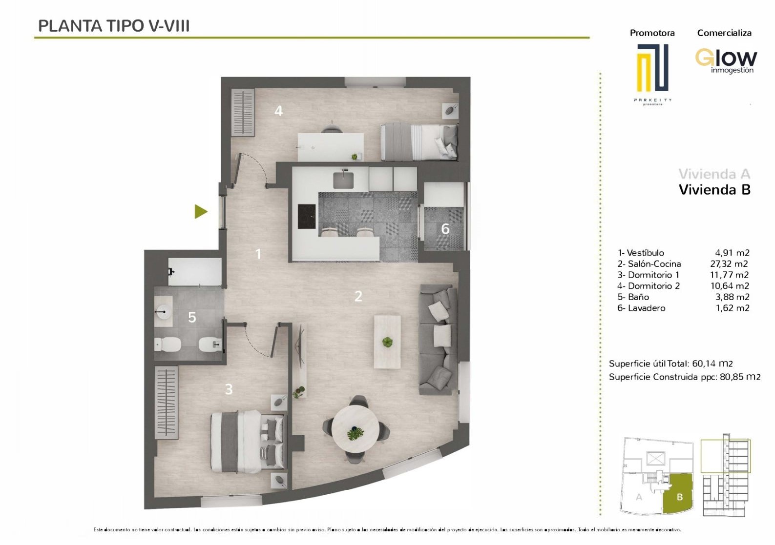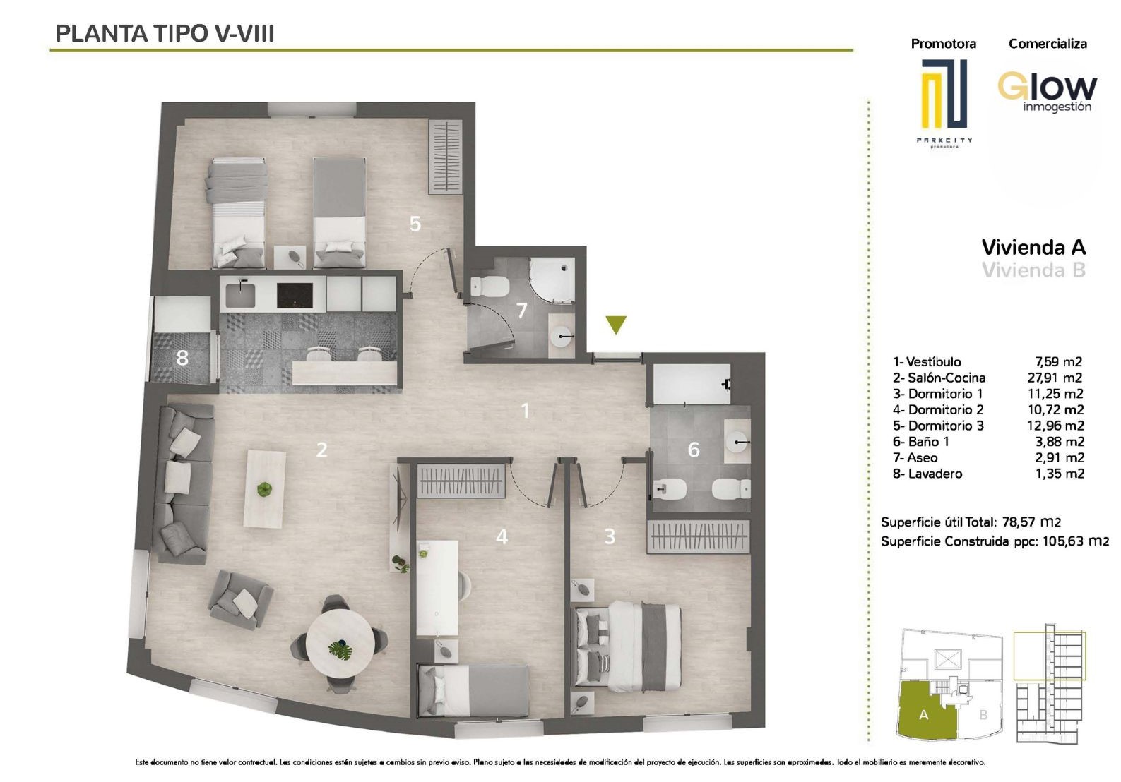Según normativa, de acuerdo con el Reglamento Electrotécnico de Baja Tensión. Cuadro de protección y toma de tierra. Instalación de TV-FM y teléfono en el salón, y cocina.